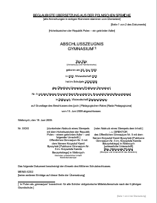 „Świadectwo ukończenia gimnazjum“ – Musterübersetzung aus dem Polnischen ins Deutsche