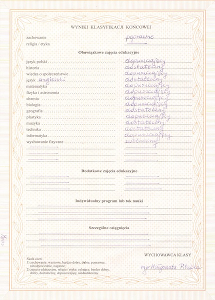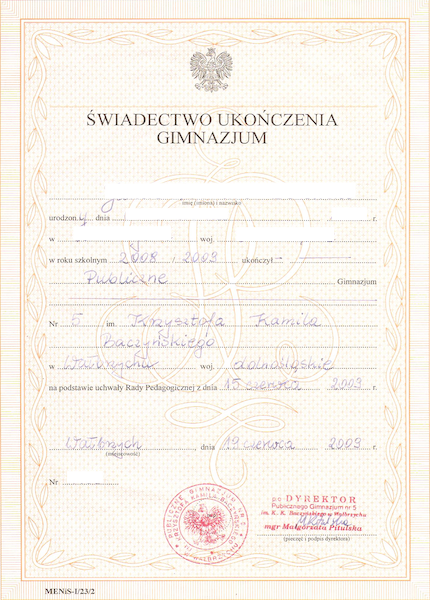 Świadectwo ukończenia gimnazjum