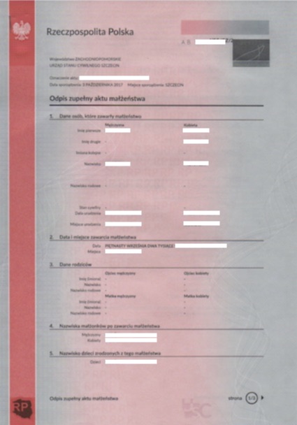 Odpis zupełny aktu małżeństwa (14 pkt.)