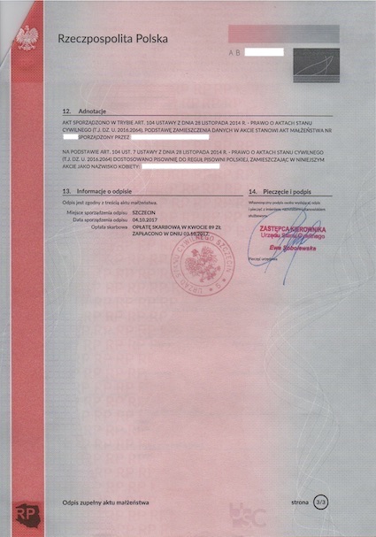 „Odpis zupełny aktu małżeństwa (14 pkt.)“ – Musterübersetzung aus dem Polnischen ins Deutsche